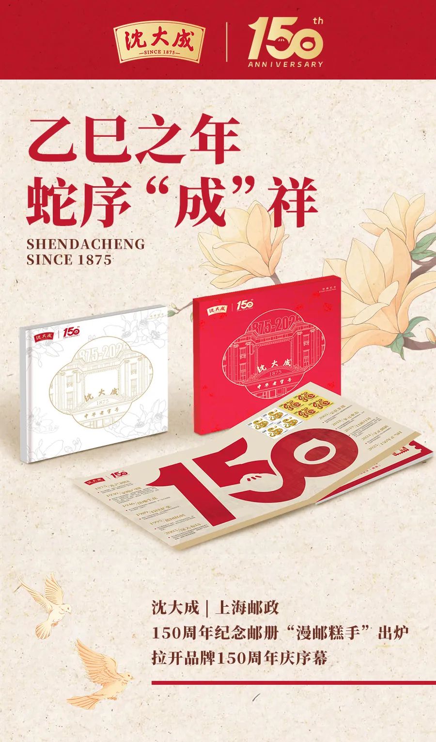 蛇年生肖邮票免费送!沈大成 | 上海邮政150周年纪念邮册来袭~